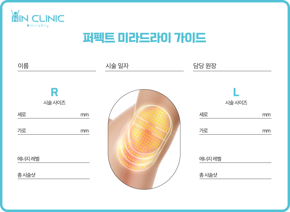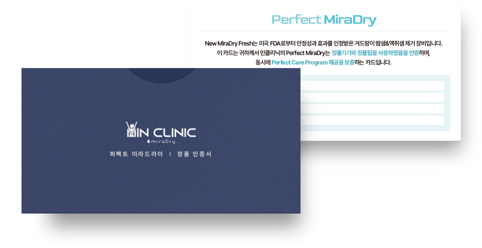 민클리닉 퍼펙트 미라드라이는 비수술 방식으로 겨드랑이 땀샘과 냄새샘을 감소시키는 시술입니다.